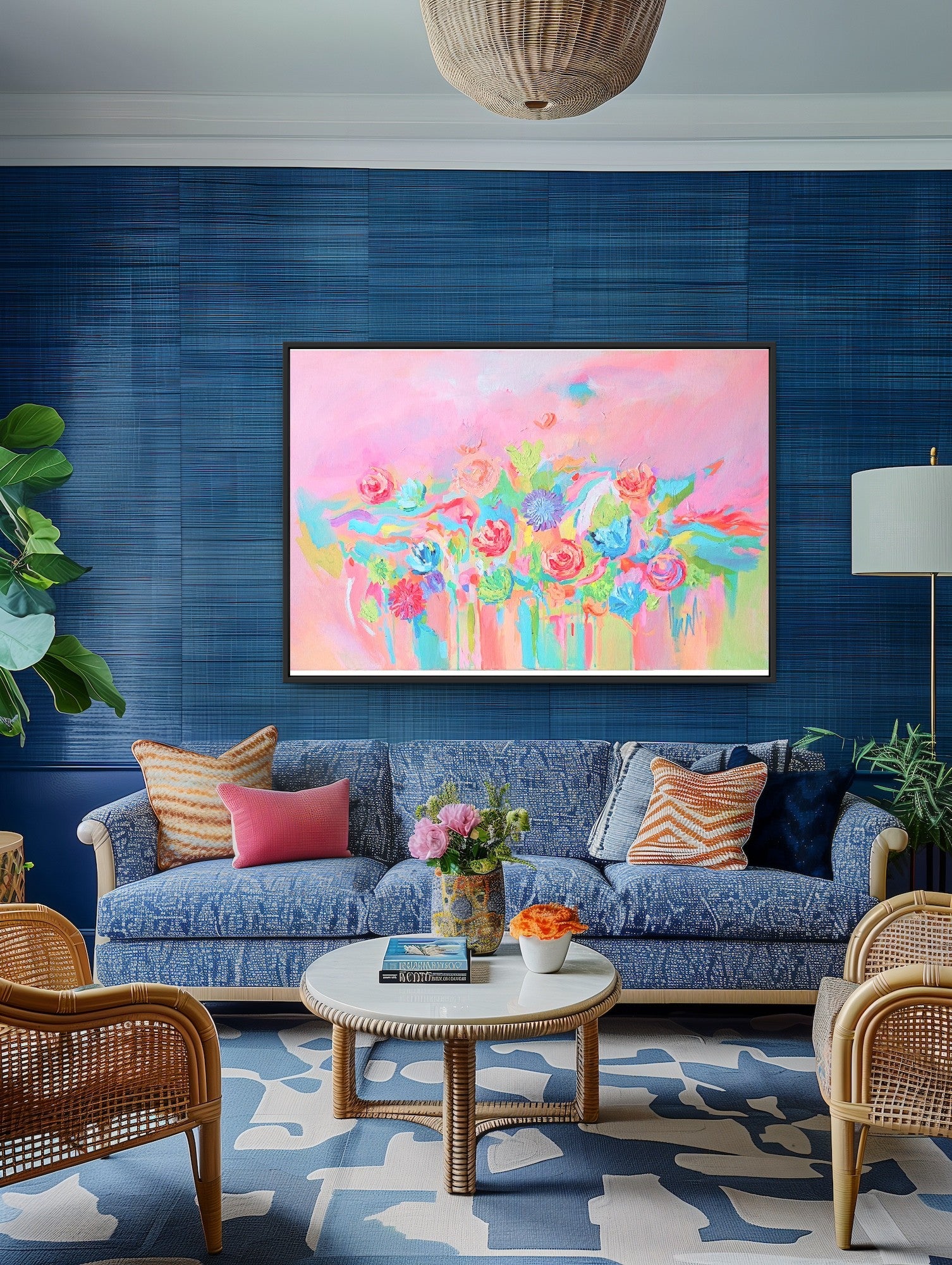 The textured flowers pop out against the soft background, and the colors flow nicely underneath them.