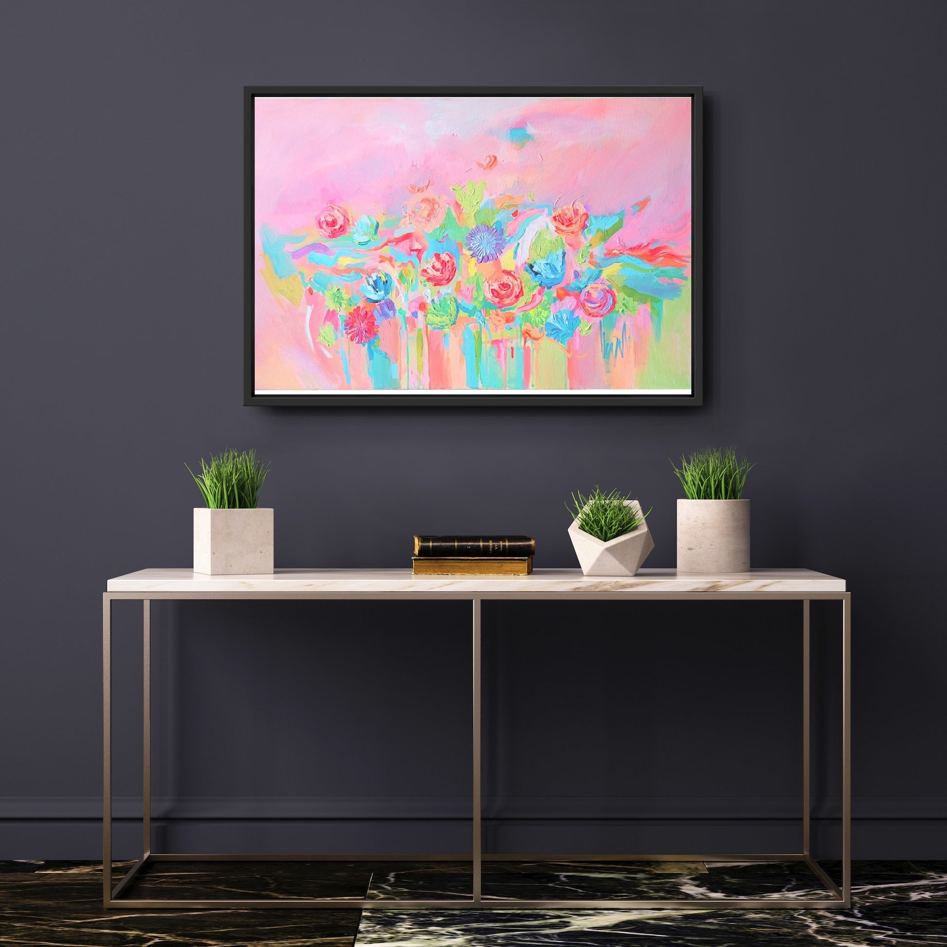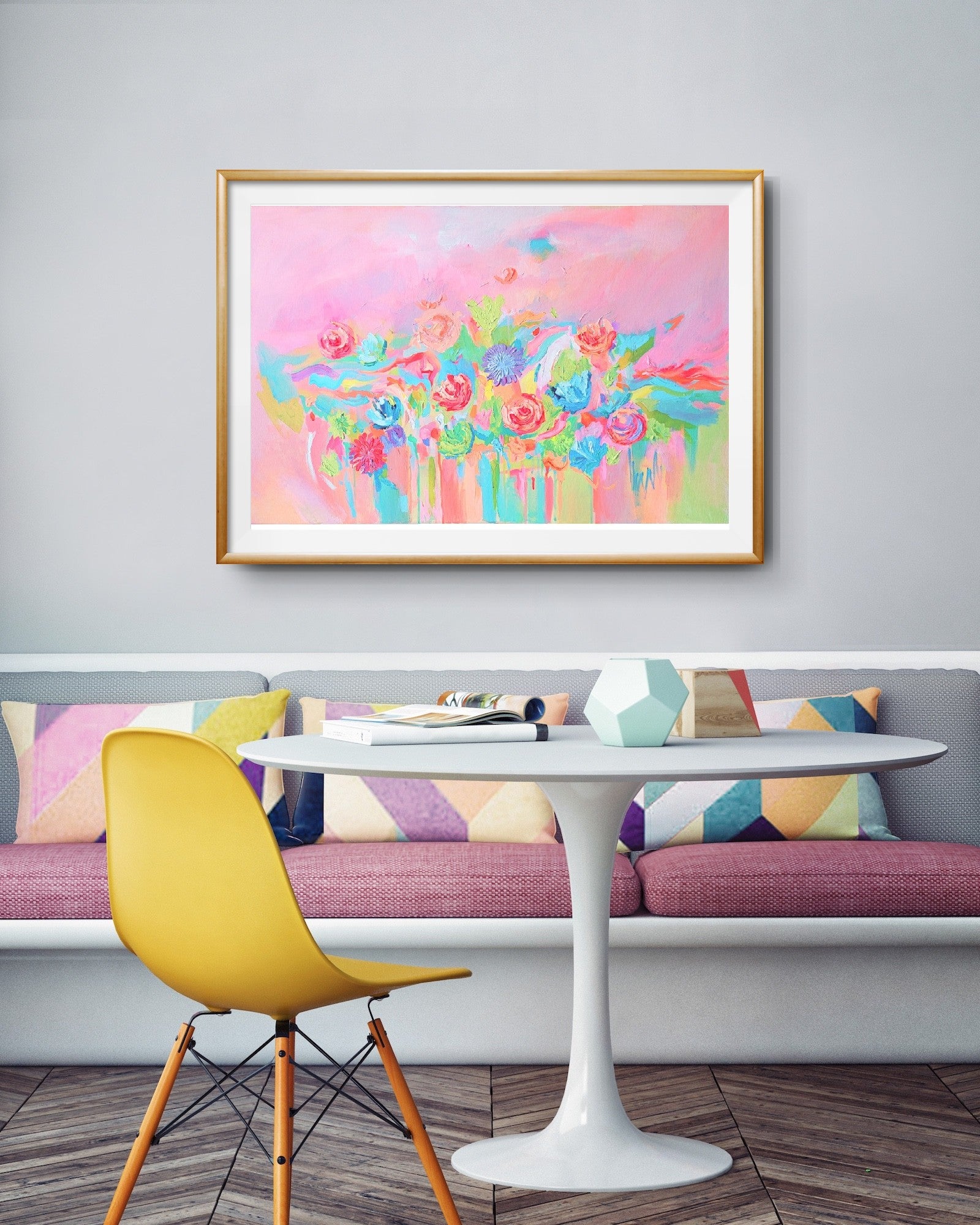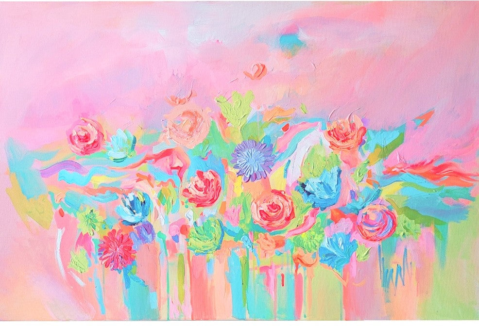 This beautiful painting reminds you of flowers shining with golden glow at sunset.